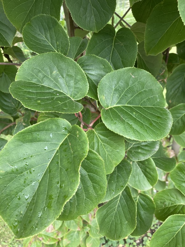 Tage är han-sorten som är fin som prydnad men som även kan användas för pollinering åt Tina. Duo är två plantor i samma kruka. Så pollinering fungerar fint genom att plantera denna kruka med båda plantorna på samma ställe Synonym med Krusbärsaktinidia.