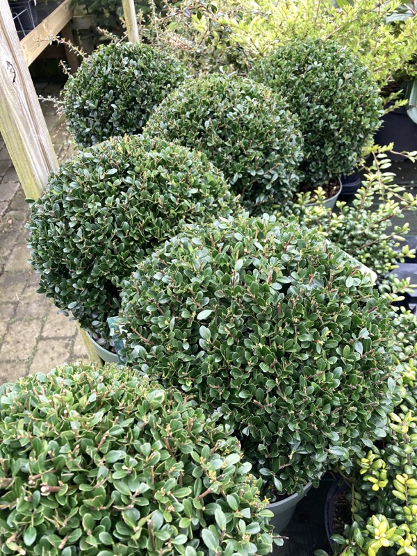 | En järnek med glänsande gröna, små blad utan taggar. Utmärkt att använda till klippta häckar eller friväxande, täta buskar.Kan även formklippas till klot eller andra figurer. Städsegrön. Klipp gärna på sensommaren. Trivs i skuggiga, på lite torrare jordar. Ett bra alternativ då man inte vill använda buxbom. |