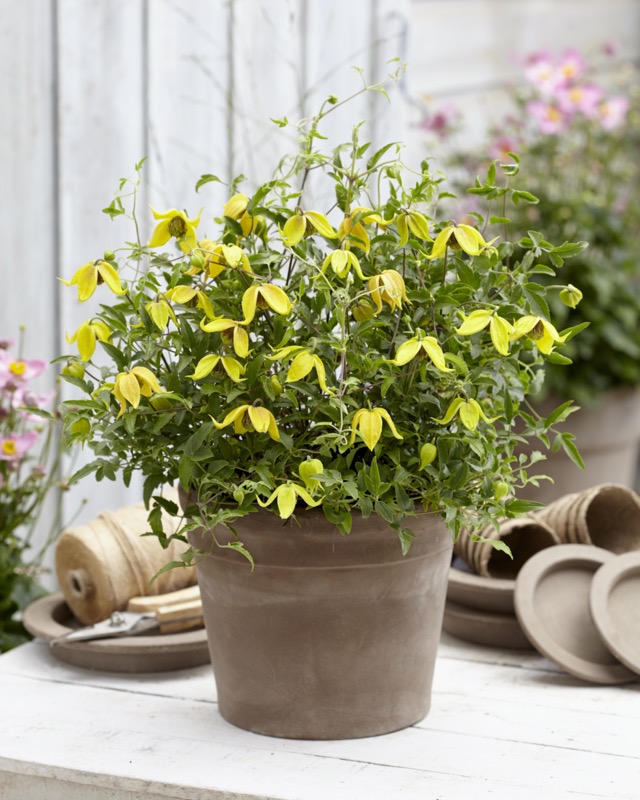 | En speciell sorts klematis med mycket kompakt växtsätt. Fin i kruka och ampel, men även som perenn i rabatten. Blommar mycket länge med eleganta, gult lysande blommor. Uppskattas mycket av humlor och bin. Prisbelönt sort för sina speciella egenskaper. Kan klippas hårt tillbaka i mars, (10 cm) Zon 1-4. |