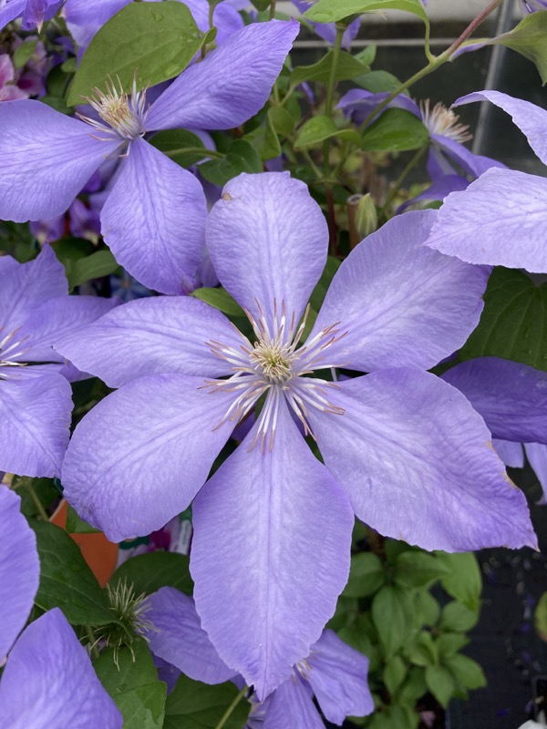 En fin sort med ljusblå stora blommor Den färgen syns riktigt bra i trädgården. Det första floret ger halvdubbla blommor. Om den skall klippas gör man bäst det efter första floret mitt på sommaren. |